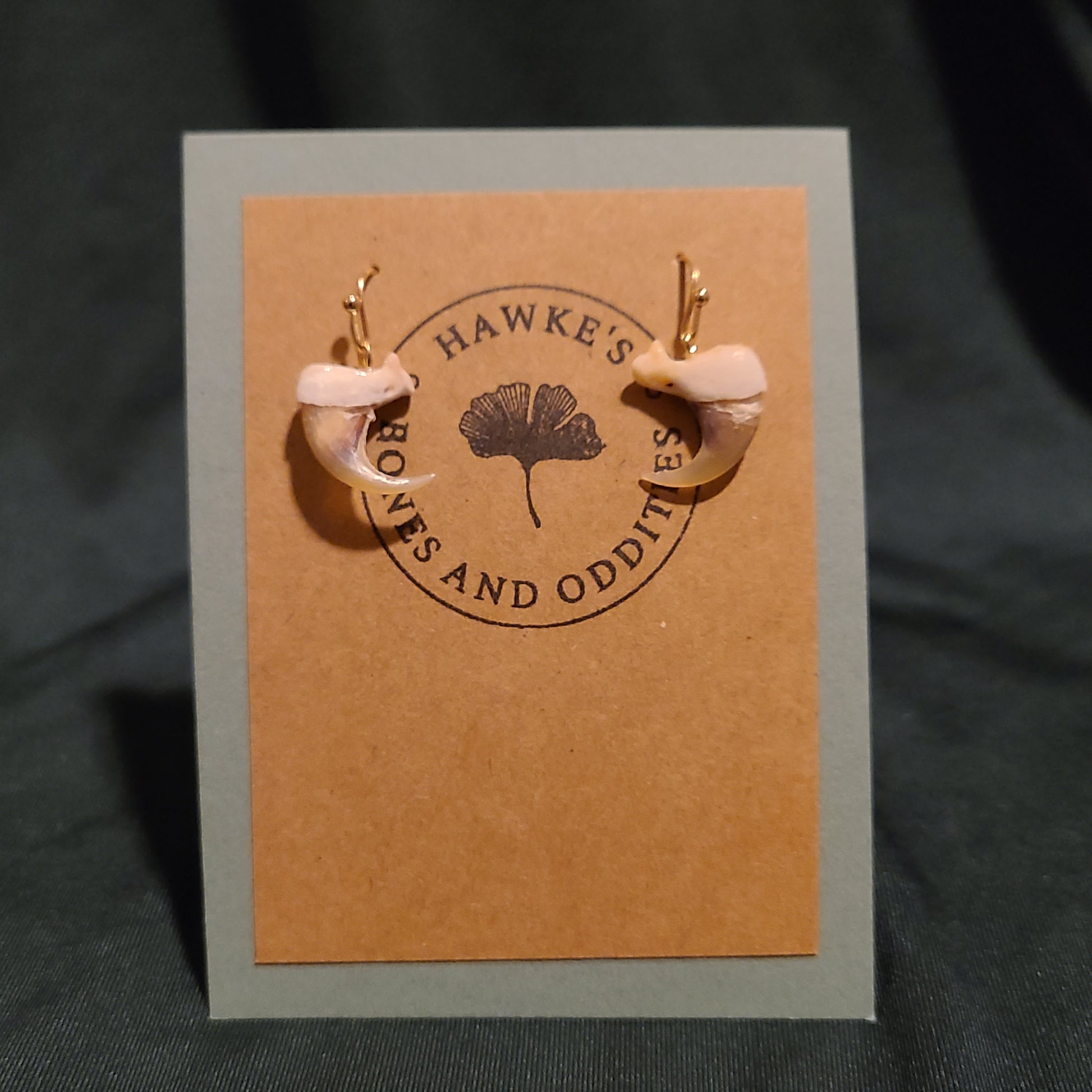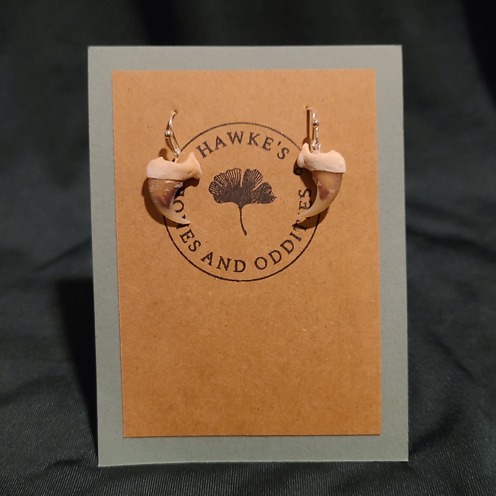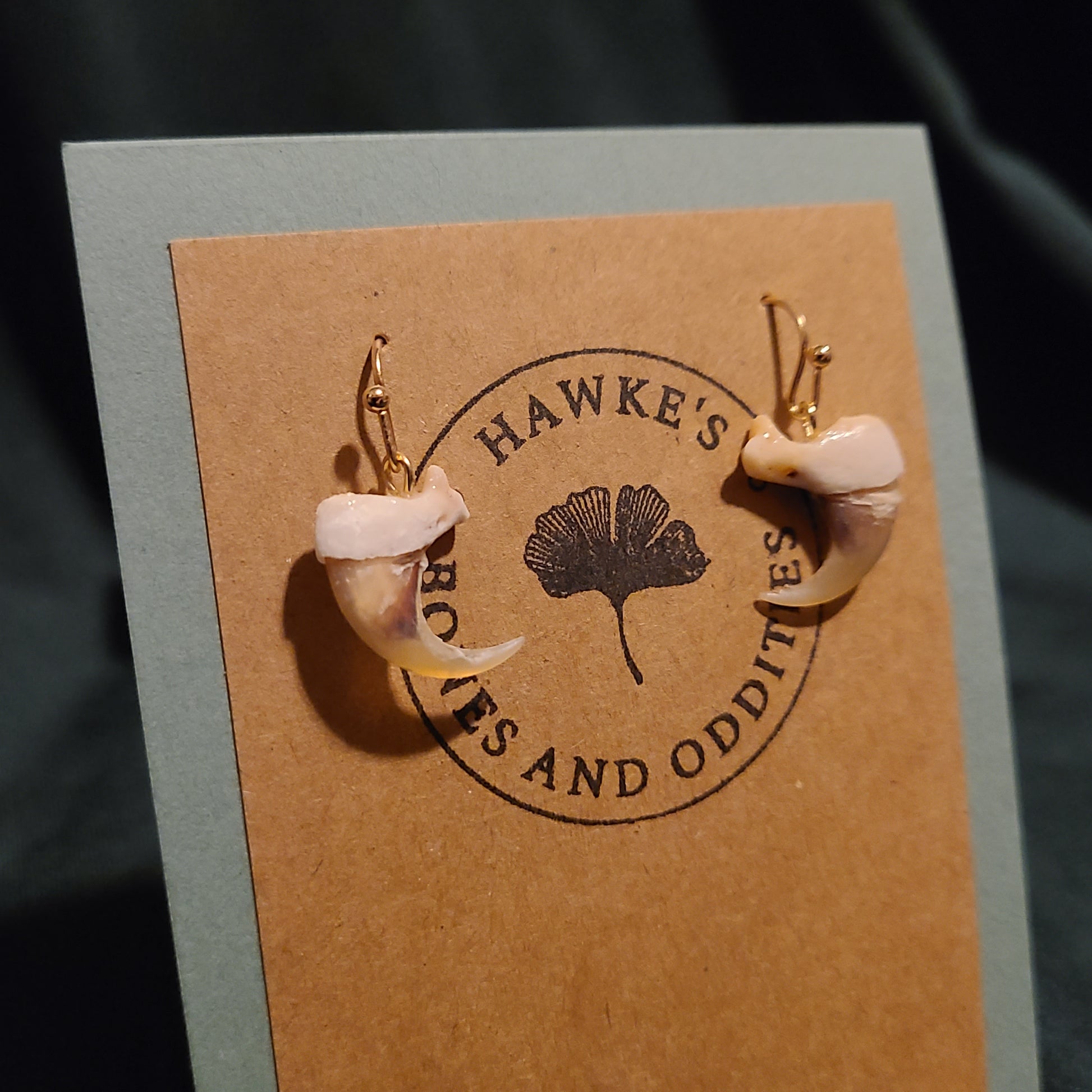 Handmade bobcat claw dangle earrings. Claws are approximately .5 - .75 inches long. Available with gold or silver nickle-free earwires with silicone stops.