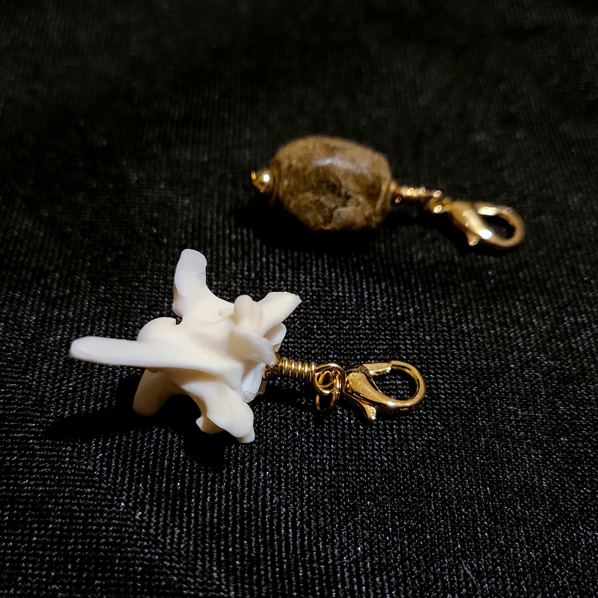 Handmade bone charms with lobster clasp. Two styles available: jumbo rattlesnake vertebrae and mammoth bone.