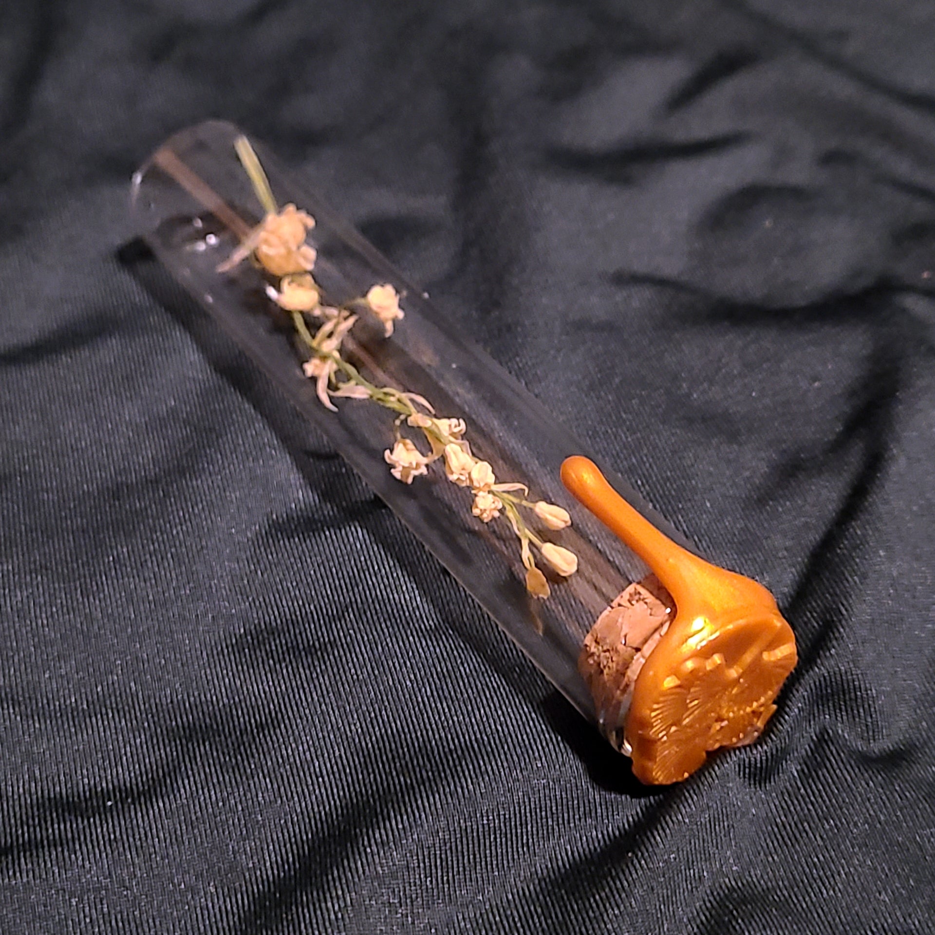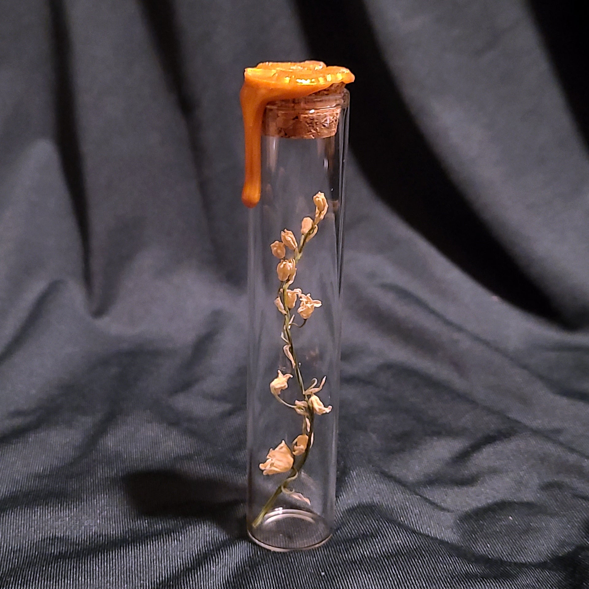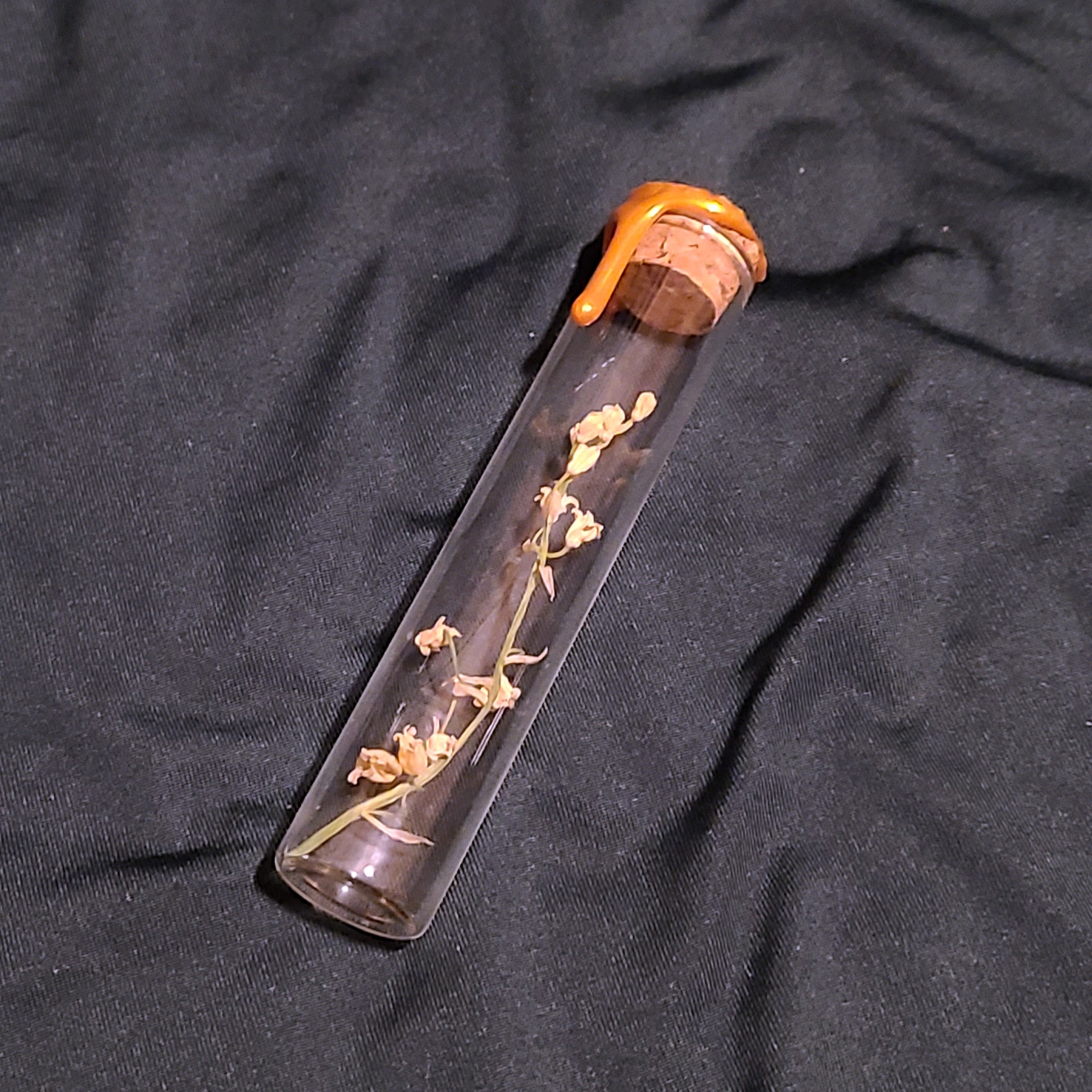 They're back! The May 2025 Lily of the valley blooms are now available. Hand foraged, dried, and preserved, these blooms are the perfect addition to any tricket shelf or oddity collection. Each vial is topped with golden wax and sealed with a ginko leaf stamp. Vials are approximately .75 inches in diameter and 4 inches tall. Please allow for slight difference in blooms due to them being a natural product, as well as a difference in wax seal as these are all individually hand poured.