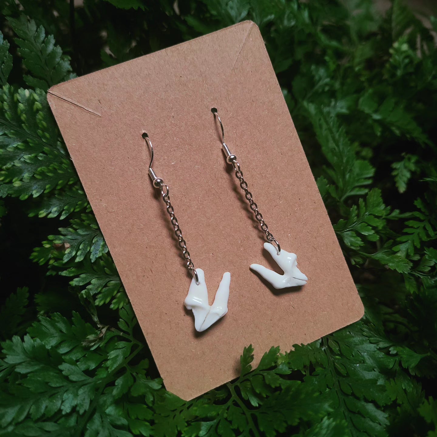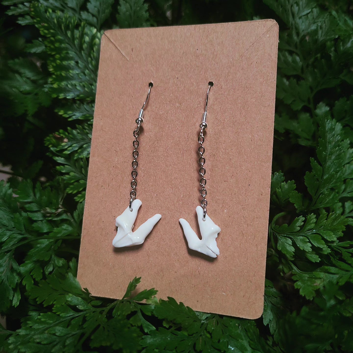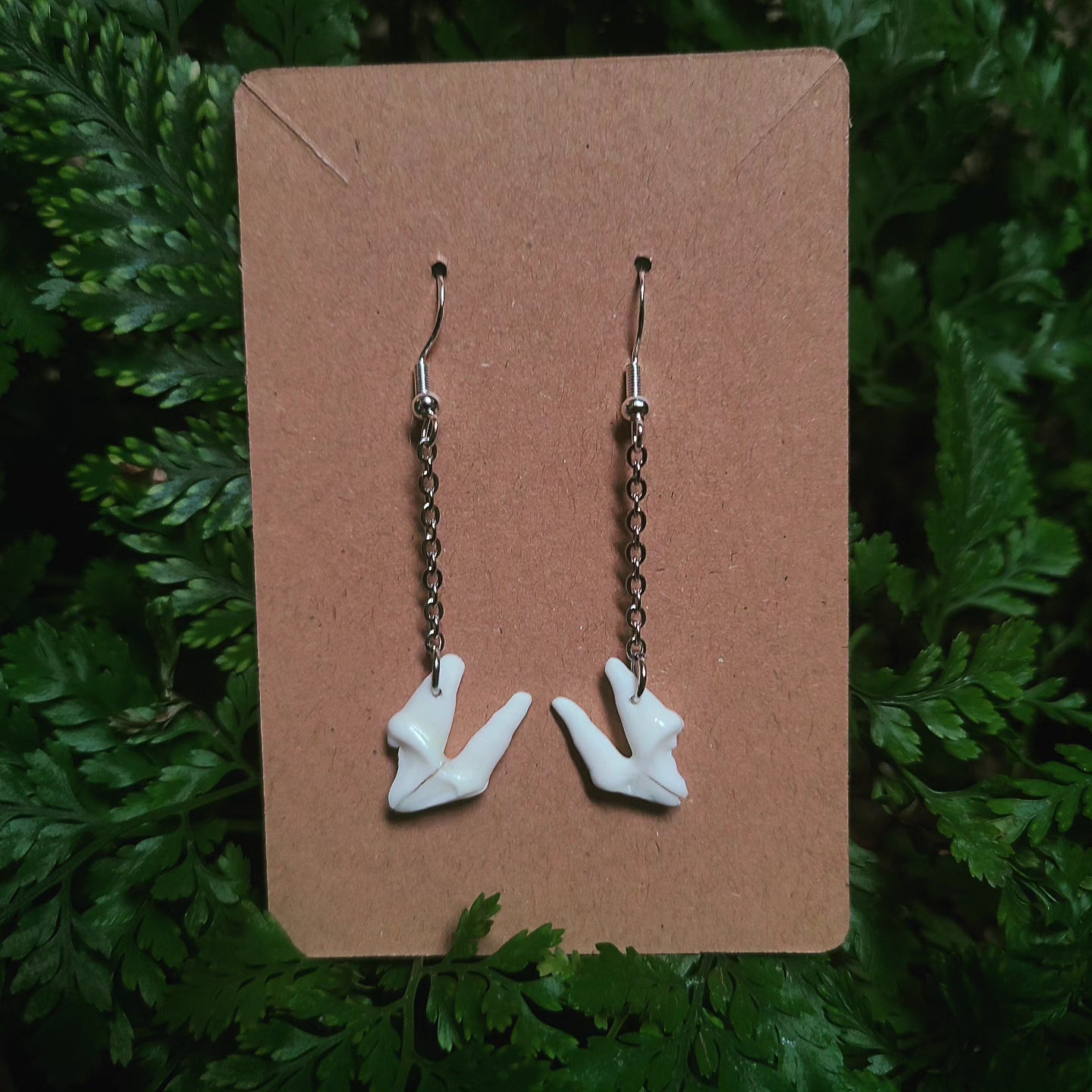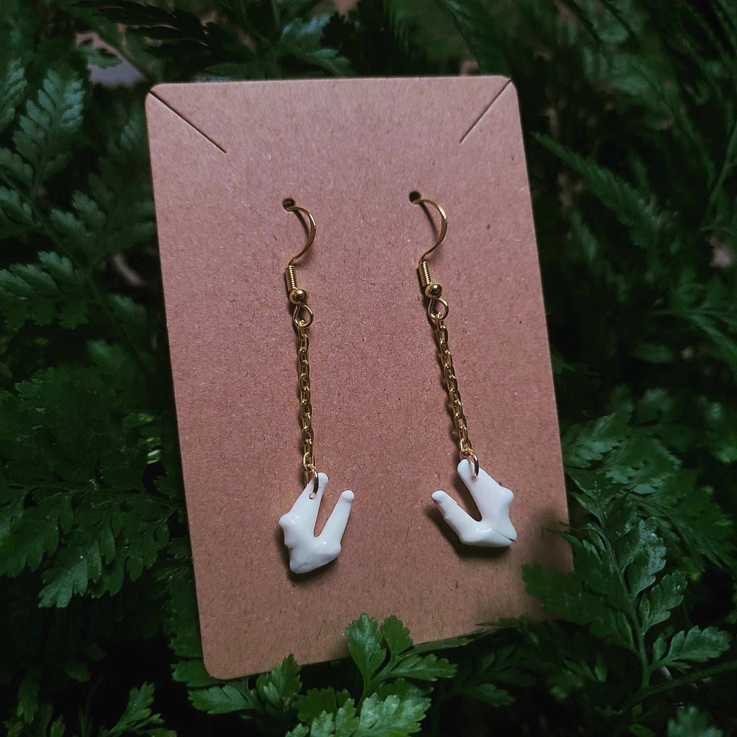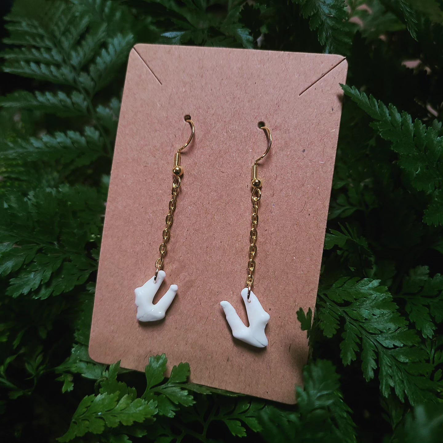 Single chain raccoon tooth earrings. Hypoallergenic hook earrings with silicone stops.