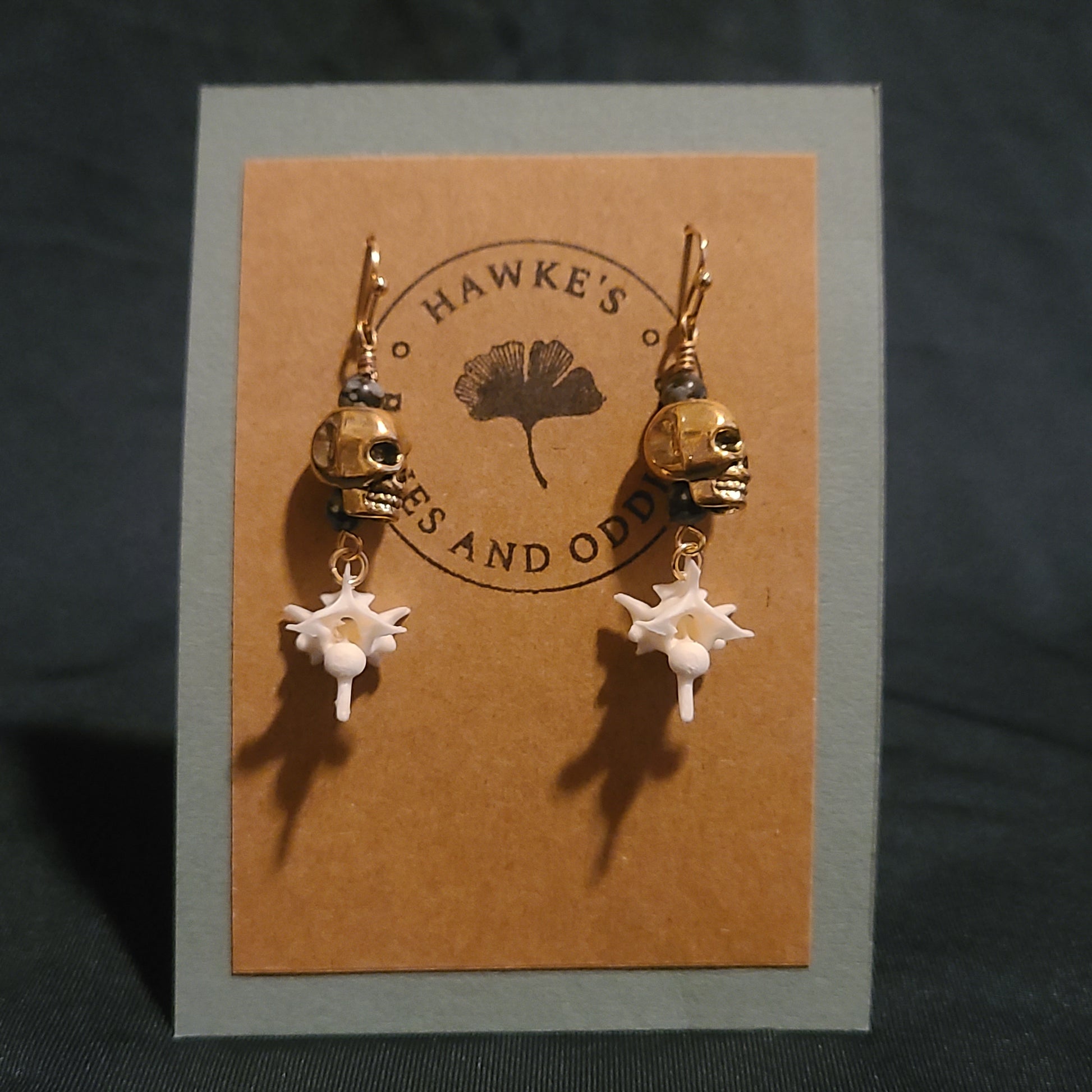 Rattlesnake vertebrae and Skull Dangle Earrings