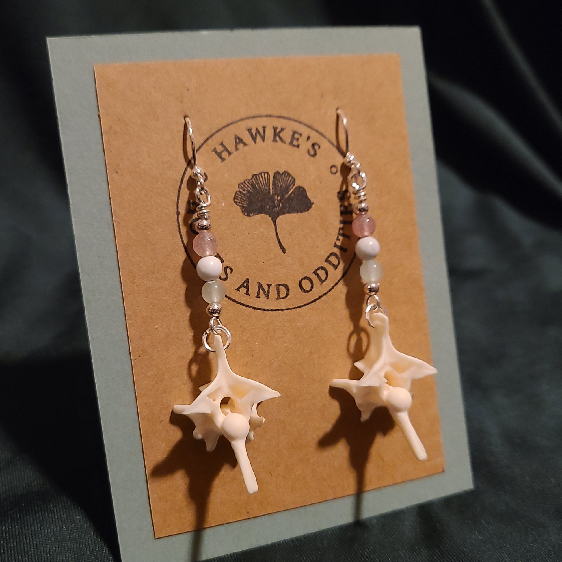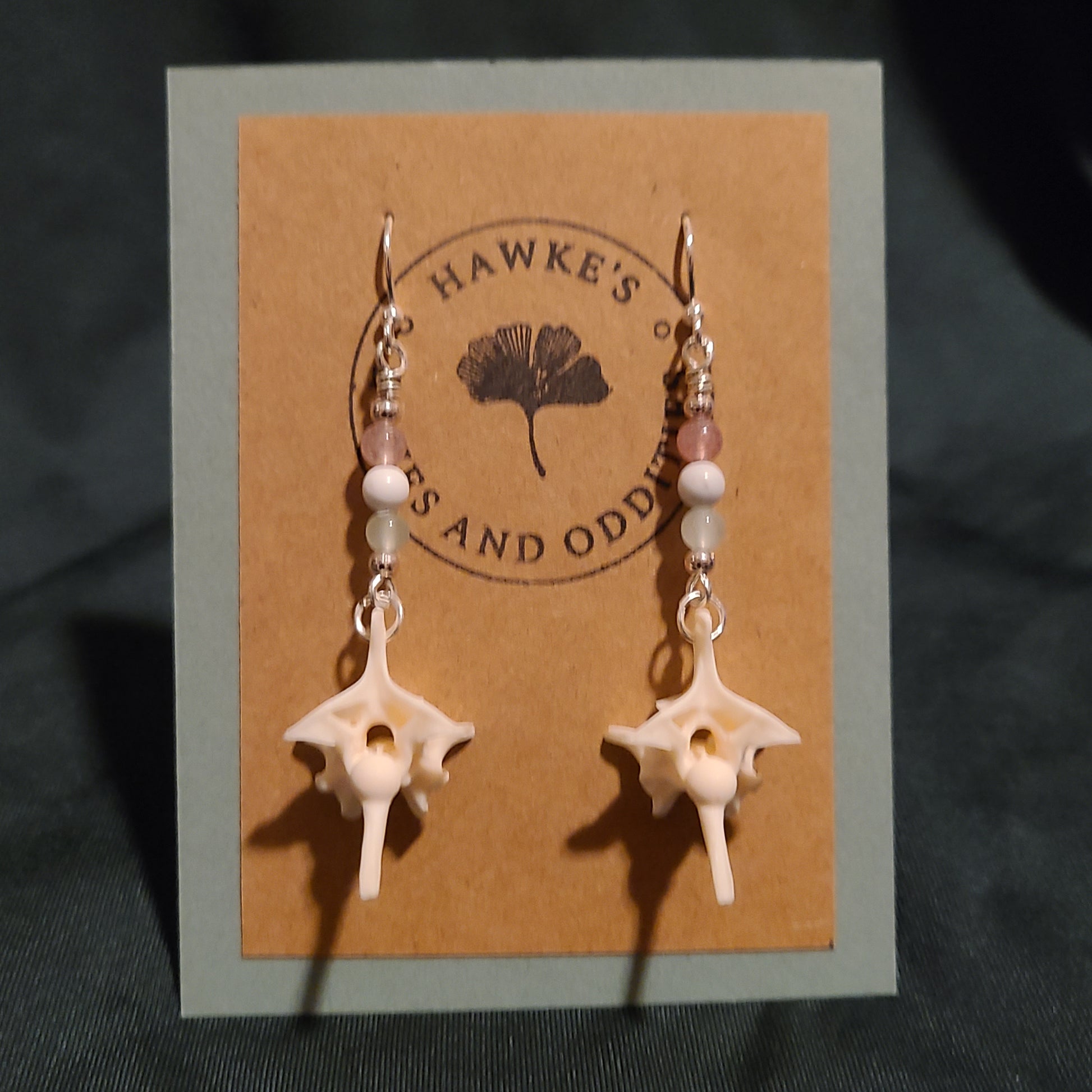 Rattlesnake vertebrae earrings are approximately 2.5 inches long.