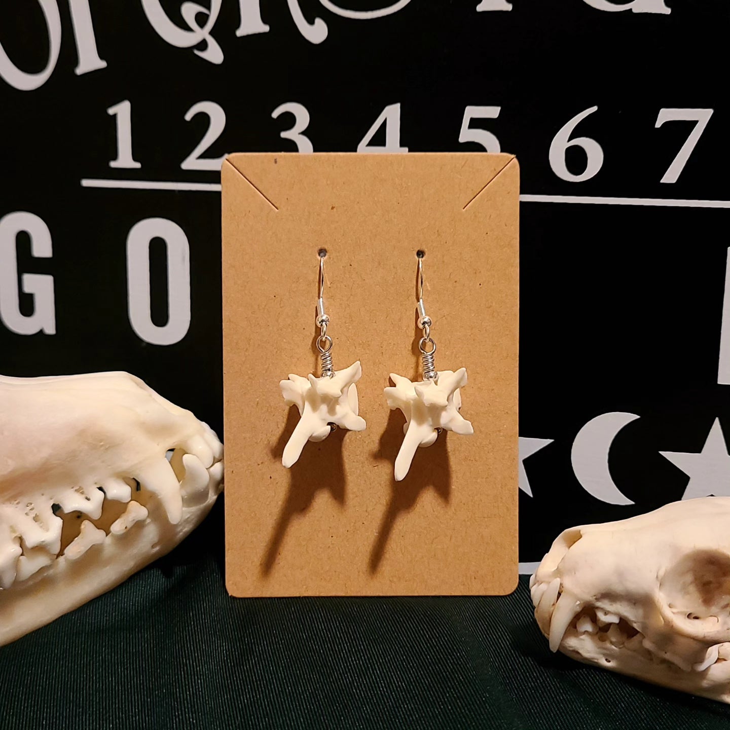 Handmade jumbo rattlesnake vertebrae dangle earrings. Vertebrae vary in size but are generally around .75 inches in height, .5 inches in length, and .75 inches in width.